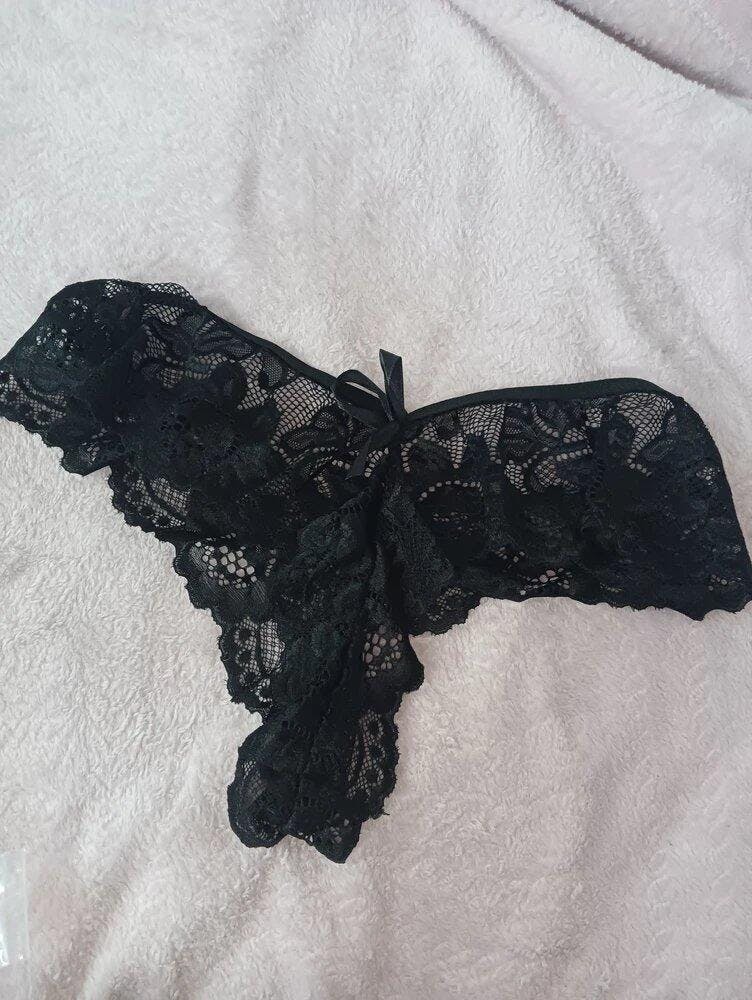 Une cascade de dentelle et de voile élégants. Cet ensemble babydoll, avec son ouverture audacieuse et son string assorti, est une ode à la féminité et à la séduction.