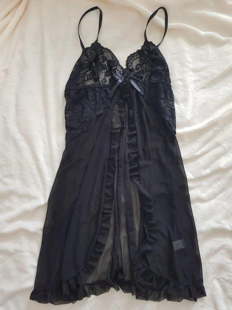 Un Design Envoûtant : L'ouverture frontale audacieuse et la coupe courte façon "babydoll" jouent avec les codes de la séduction, dévoilant la silhouette avec élégance et malice.